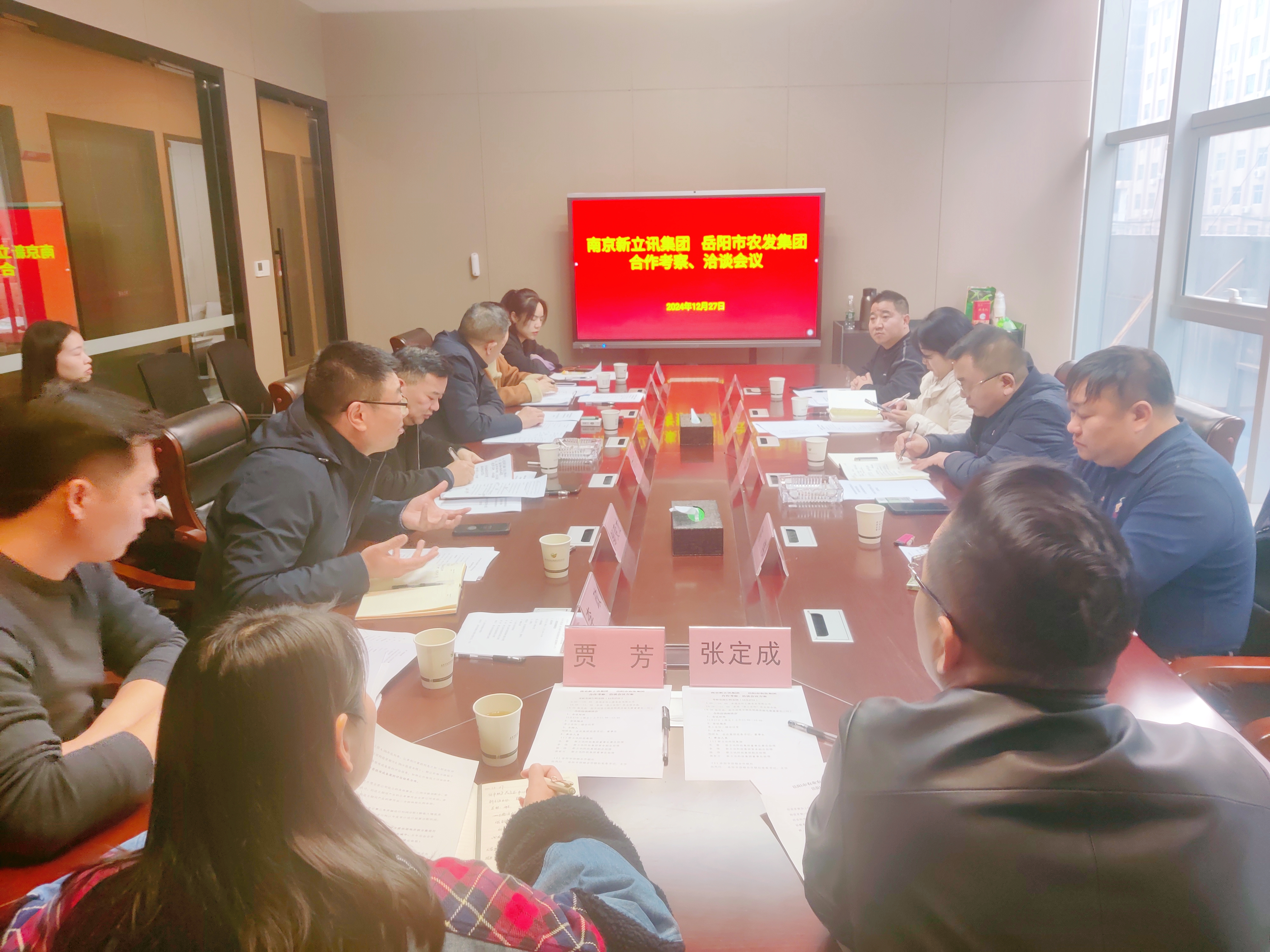 2024年12月27日,新立訊科技集團(tuán)董事長(zhǎng)毛霖,常務(wù)副總經(jīng)理李偉,副總經(jīng)理陳偉等一行赴岳陽(yáng)農(nóng)發(fā)集團(tuán)進(jìn)行考察調(diào)研。岳陽(yáng)農(nóng)發(fā)集團(tuán)黨委書記、董事長(zhǎng)鄒國(guó)良等會(huì)見(jiàn)毛霖一行并舉行座談。岳陽(yáng)市供銷合作聯(lián)社黨委書記、主任向風(fēng)行、副主任鄒變龍等參加座談。