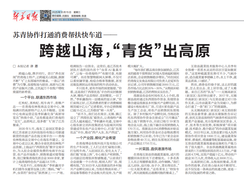 從高原到江南,從牧場(chǎng)到餐桌,蘇青協(xié)作的故事,仍在青山綠水間不斷續(xù)寫。這不僅僅是一條商品的流通之路,更是一條共同發(fā)展的希望之路。