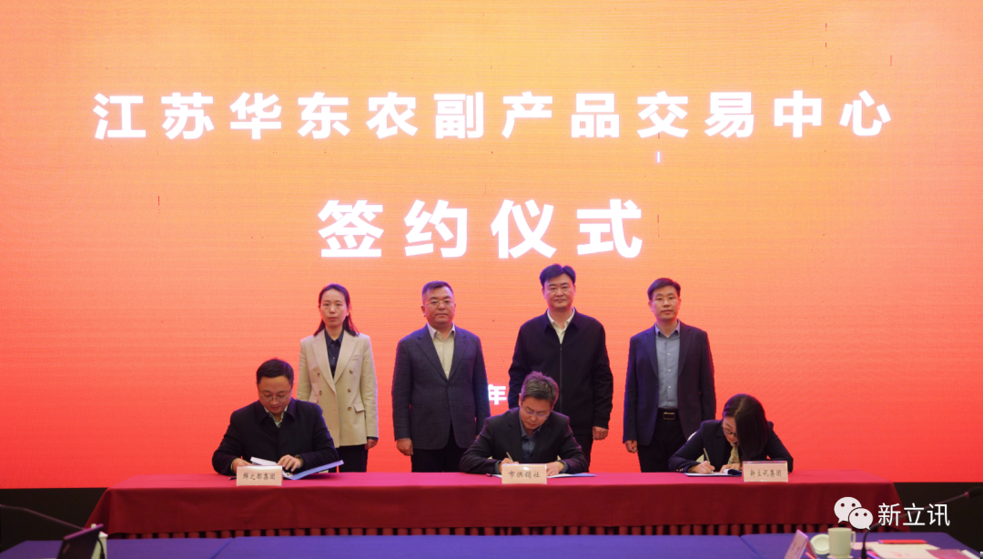 2023年1月10日,“江蘇華東農副產品交易中心簽約儀式”在江蘇鹽城市鹽都區驛都金陵大酒店隆重舉行。鹽都區委副書記、區長馬正華,鹽城市供銷合作總社黨委書記、理事會主任朱雯,鹽都區委副書記、副區長朱偉,新立訊董事長(兼青海農林牧商品交易中心董事長)毛霖,鹽城市供銷合作總社黨委委員、理事會副主任沙附生,鹽都區農業農村局、區供銷社、區國控集團等相關負責同志共同出席簽約儀式。